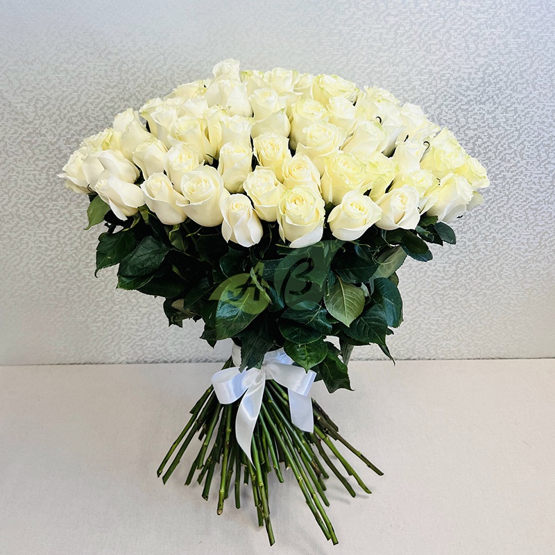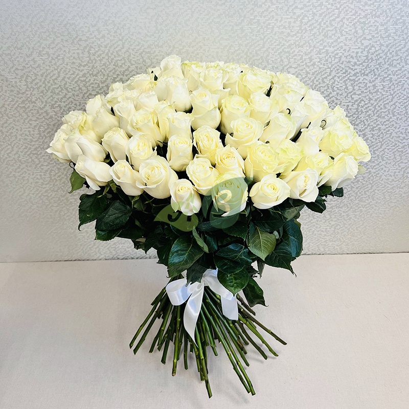 • Роза - 101 штука, цвет - белый, длина стебля - 70 см;