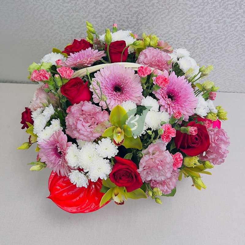 Состав и характеристики цветов в корзине "Яркий микс":
